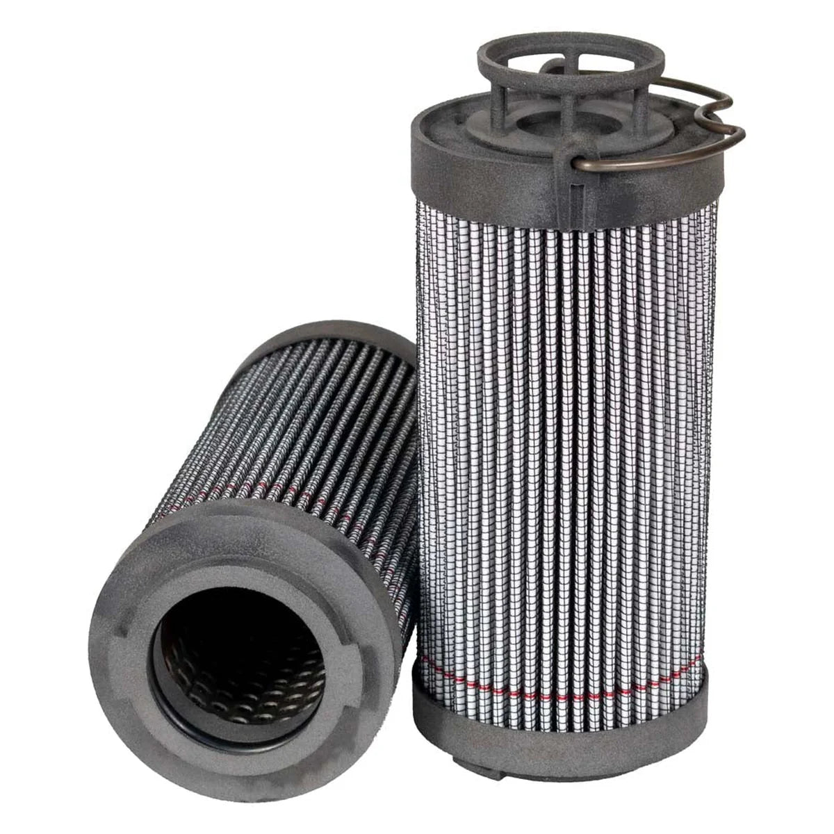 The efficiency of the element is shown using the Micron (µ) and Beta (β) ratings. The micron rating indicates the size of the particle being filtered and the beta rating the efficiency, calculated as 1/β.