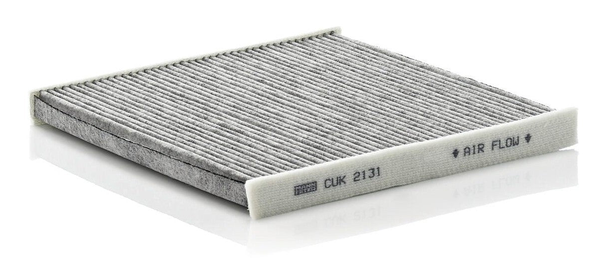 High-quality MANN-FILTER cabin filters with active carbon - nearly 100% protection from particles like pollen, diesel soot & tyre abrasion / Additional protection from harmful gases & unpleasant odour. The trated highly-effective activated carbon gives protection against harmful gases such as ozone, nitrogen oxide or sulphur dioxide and eliminates unpleasant odours during the entire service interval.