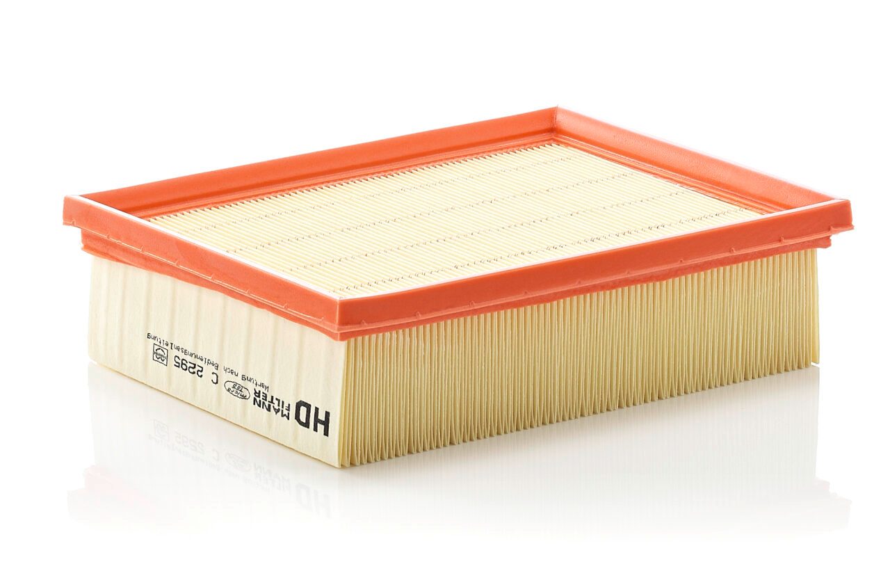 High-quality MANN-FILTER air filters for clean air intake and optimum protection for your engine, mass air flow sensor & other sensitive components / They meet requirements of modern engine technology. Highest dirt holding capacity and dirt separation efficiency, low flow resistance and high pleat stability ensure functional reliability during the entire service interval.