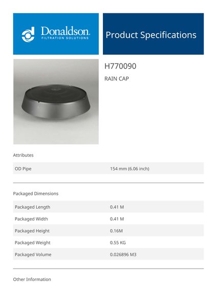 Donaldson P780376 Inlet Hood, Plastic