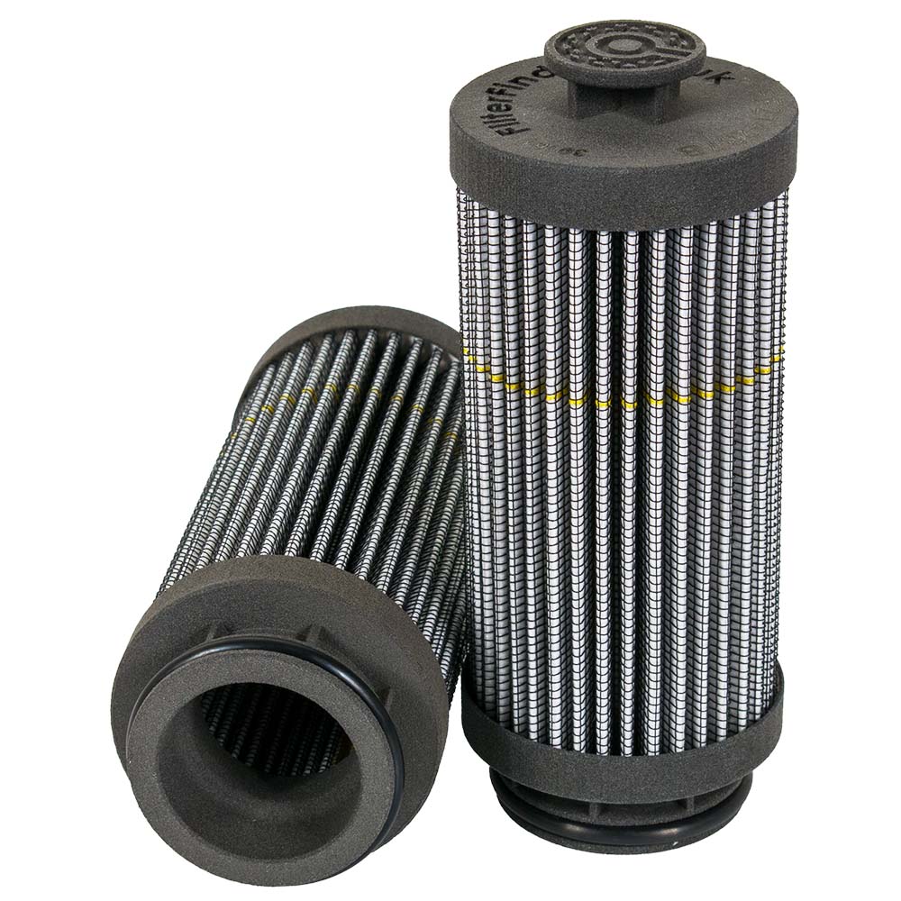 The efficiency of the element is shown using the Micron (µ) and Beta (β) ratings. The micron rating indicates the size of the particle being filtered and the beta rating the efficiency, calculated as 1/β.